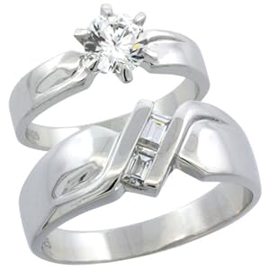 In stock. Revoni Sterling Silver 2-Piece CZ Ring Set ( 4mm Engagement Ring & 6mm Man's Wedding Band ), Size K