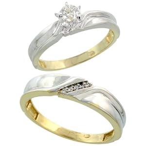 In stock. Sterling Silver (Gold Plated) 2-Piece Diamond Ring Set, 3.5mm Engagement Ring & Man's 5mm Wedding Band, Size J
